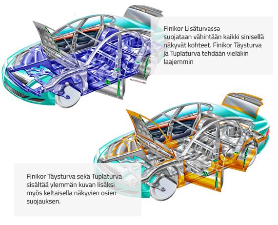Finikor Lisäturva on kehitetty yhteistyössä automaahantuojien kanssa ja se sopiikin 0-4 vuotiaille autoille. Finikor Lisäturvassa käsitellään auton alustan kotelot sekä alusta kotelo- sekä alusta-ainetta käyttäen. Käsittelyssä ei porata reikiä, joten auton takuut säilyvät. Finikor Lisäturvassa on 10-12 vuoden takuu. Takuun laajuus riippuu auton iästä käsittelyhetkellä. Takuu edellyttää Jatkoturva–käsittelyä 2-4 vuoden päästä Lisäturvan käsittelystä.